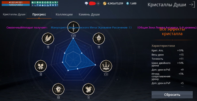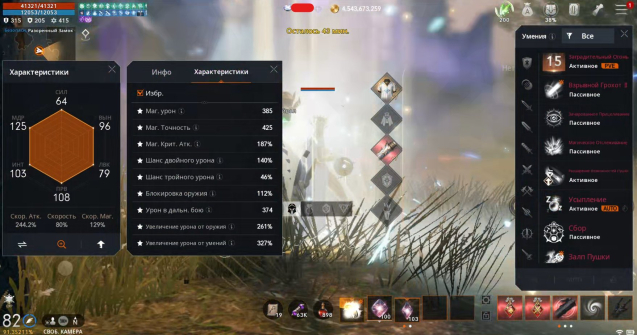 ℹ️ Другие Характеристики: Крит Атака 183%, Шанс Двойного Урона 140%, Шанс Тройного Урона 46%, Блокировка Оружия 112%, Увеличение Урона от Оружия 261%, Увеличение Урона от Умений 327%, Сопротивление Оглушению 104%, Шанс Оглушения 78%.