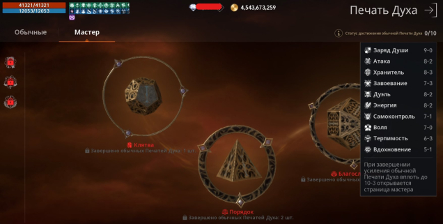 Заряд Души 9-0, Атака 8-2, Хранитель 8-3, Завоевание 7-3, Дуэль 8-2, Энергия 8-2, Самоконтроль 7-1, Воля 7-0, Терпимость 6-3, Вдохновение 5-1.