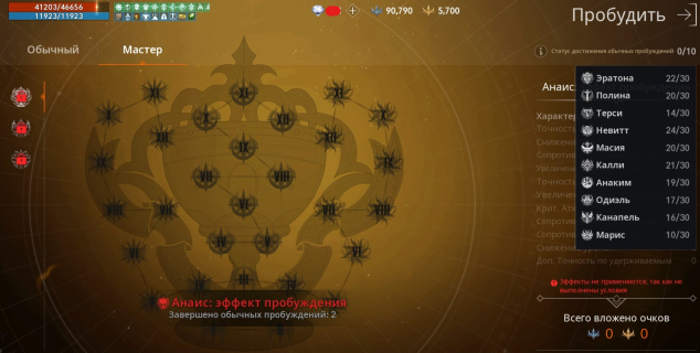 Эратона 10-10-8 +2 скилл; Полина 10-8-8 +2 скилла; Терси 7-6-6 +1 скилла; Невитт 8-12-10 +2 скилла; Масия 9-8-9 +2 скилл; Калли 9-9-8 +2 скилл; Анаким 9-8-8 +1 скилл; Одиэль 9-6-8 +1 скилла; Канапель 8-7-7 +1 скилл, Марис 7-5-4 +0 скилл.