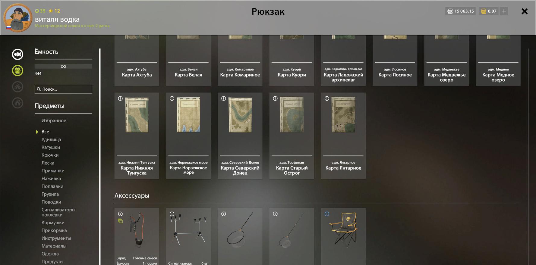 Топ аккаунт, за донат куплена венга, фулл метал, акватика и сенси, балик 15к, есть рот под, стул, србраны сборки на медное, на море, на спин, куча прикормки и наживок(в том числе гн). много водки тунгус и прочих нужных вещей