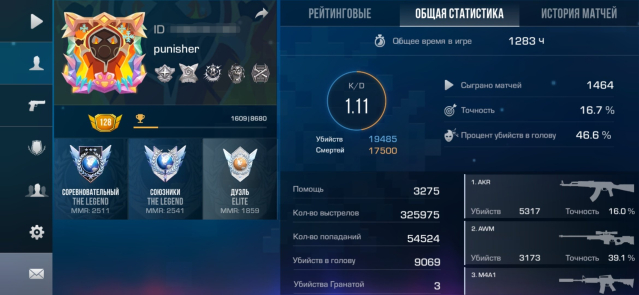 Звание: LegendКраткое описание: Легенда в союзниках и соревновательном🔥💪дорогие рамки🔥10 топовых медалей🎖️1283ч и 3 года🕒💪