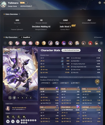 Краткое описание: EU | AR 70 | 48 characters · 26 legendary | Hyacine + Evernight, Castorice, Hysilens and others