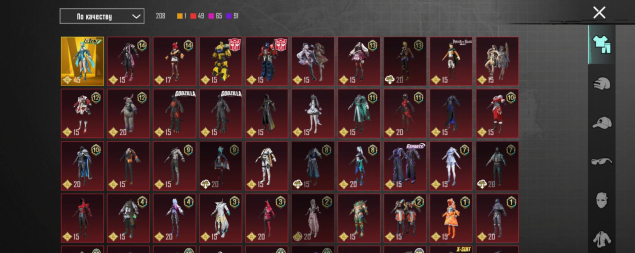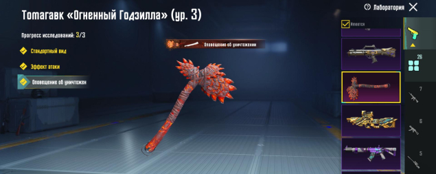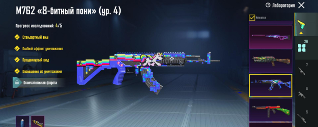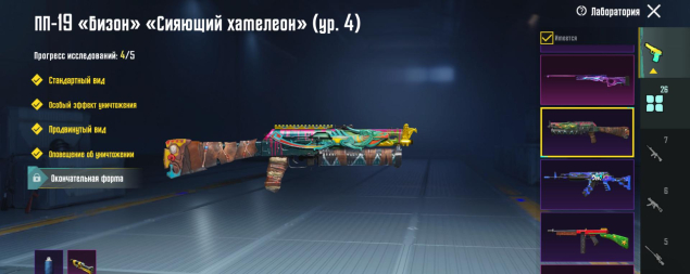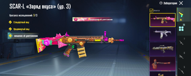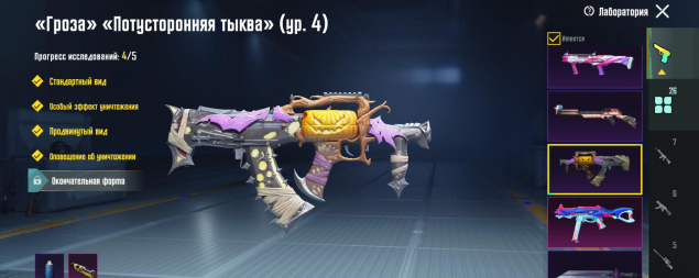 M416 Ледник 4 лвл, Берил 4 лвл, Бизон Сияющий хамелеон 4 лвл, Гроза Потусторонняя тыква 4 лвл, P90 Золотой коготь 4 лвл, СКАР 3 лвл, Томагавк 3 лвл, УЗИ 3 лвл, ЮМП 3 лвл, Томпсон Карамельная трость 2 лвл, M249 Уличные граффити 2 лвл, СКС Жемчужный приговор 2 лвл, 26 оружий всего