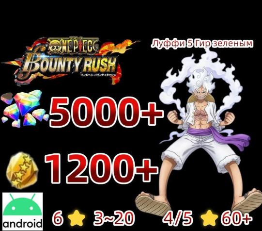 ⚡️ ПОЛНЫЙ ДОСТУП ⚡️ Android ⚡️ Луффи 5 Гир зеленым ⚡️ 5000+ Бриллиантов ⚡️ 1200+ фрагментов ⚡️ СМОТРИТЕ ОПИСАНИЕ ⚡️Платформа: Android