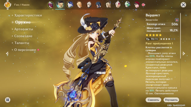 Краткое описание: 💛6 ЛЕГЕНДАРОК (с оружиями) || Навия (с сигной), Фурина (с сигной Аято), Дилюк, Муалани💙