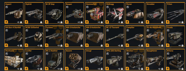 По многим позициям присутствуют несколько улучшенных копий с разными перками, что даёт гибкость для любых билдов (PvP / PvE / CW).
