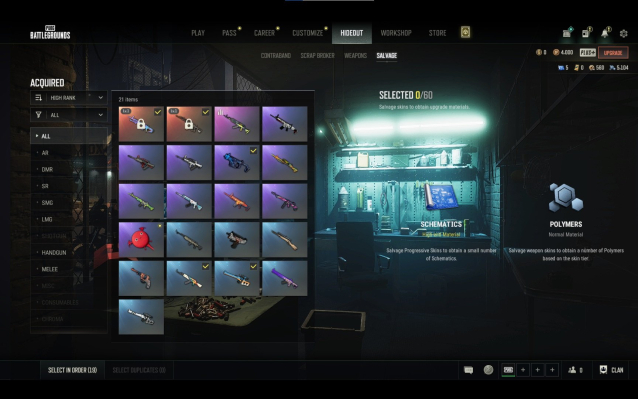 ➖ На аккаунте имеются 5 чертежей и 5 104 полимера, с помощью которых Вы сможете улучшить PROGRESSIVE оружия.