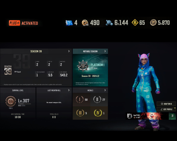 ➖ Приобретен PUBG Plus ➕ (~13$) — доступны все функции игры (доступ к ранговым матчам, создание собственных (пользовательских матчей, создание кланов и т.д.);