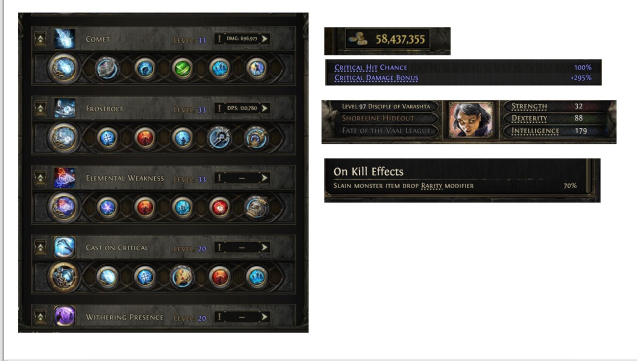 Прокачен в январе 2026 (сюжетка 4 акты+интерлюдия пройдены +Ascendancie 8 очков) в лиге Fate of the Vaal