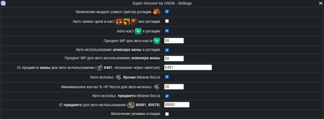 🔹Авто-захват и каст Огненной завесы и Наваждения вблизи босса вне ротации.