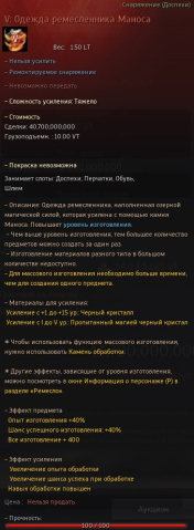 Краткое описание: 🟣20(V) Одежда Маноса ЛЮБАЯ, выставление на аук🟣(Укротителя, алхимика, моряка, рыбака и тд)Подробное описание: Цена указана выставление на аук по минимально возможной цене