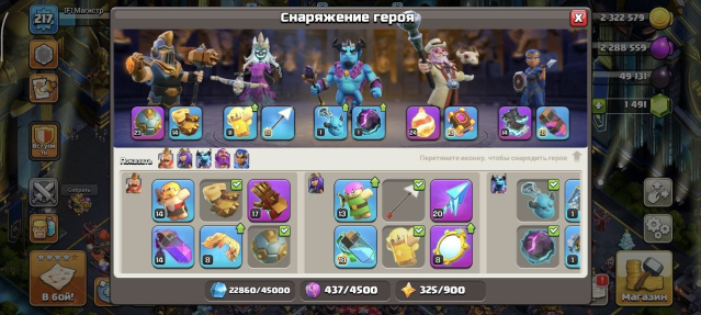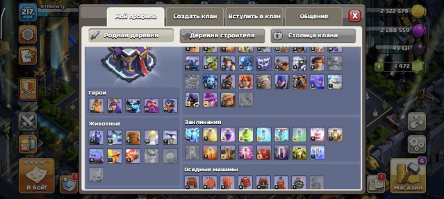 Уровень Ратуши: 15Краткое описание: 🟨🔥🔥【 TH 15 FULL 】⚡ 217 LVL ⚡💎8 ЭПИК СНАРЯГ + 5К ГЕМ💎【ГЕРОИ — 72/81/52/32】⚡ С ПОЧТОЙ ⚡ СКРИНЫ 🟨🔥🔥