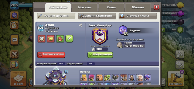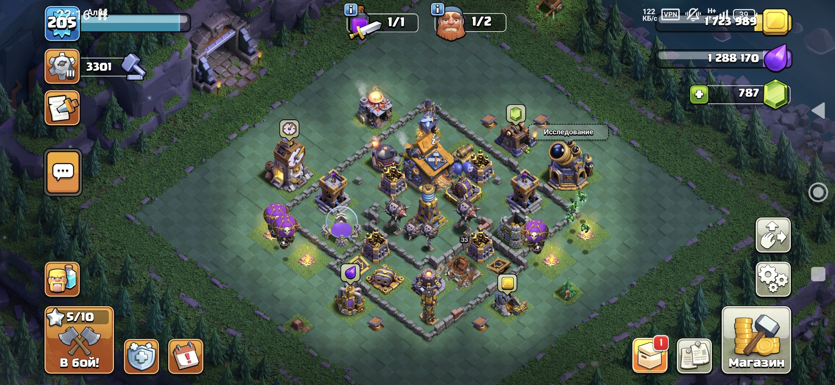 Уровень Ратуши: 15Краткое описание: 🛖𝟏𝟓 𝐓𝐇🛖【🐲𝟕𝟖𝟕 Гем💎】【⚗️𝟐𝟎𝟓 𝐋𝐯𝐥⚡】【👷♂️𝟔⚒️】【🦸♂️𝟖𝟎/𝟖𝟏/𝟔𝟕/𝟓𝟗/𝟑𝟔🐉】