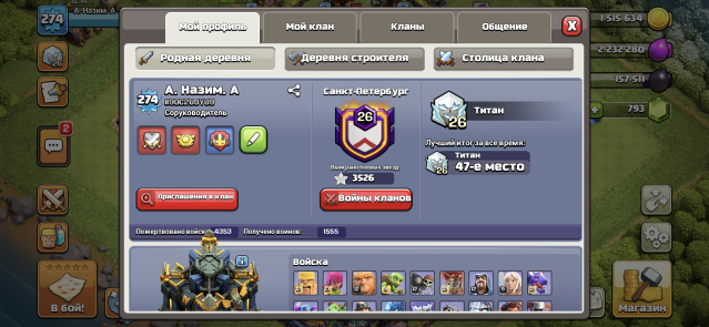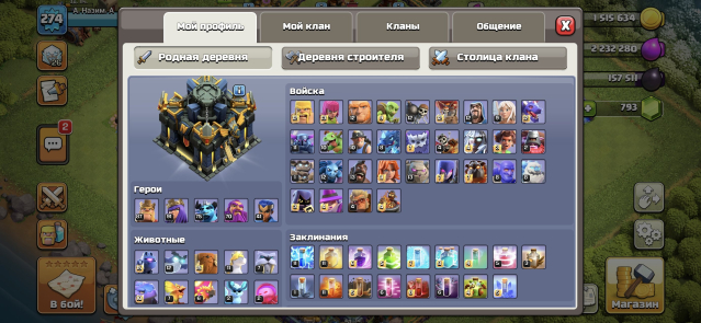 Уровень Ратуши: 17Краткое описание: 🛖𝟏𝟕 𝐓𝐇🛖【🐲𝟕𝟗𝟑 Гем💎】【⚗️𝟐𝟕𝟒 𝐋𝐯𝐥⚡】【👷♂️𝟔⚒️】【🦸♂️𝟖𝟕/𝟗𝟏/𝟕𝟓/𝟕𝟎/𝟒𝟏🐉】