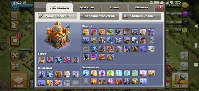 Уровень Ратуши: 16Краткое описание: 🛖𝟏𝟔 𝐓𝐇🛖【🐲𝟏𝟎𝟏𝟐 Гем💎】【⚗️𝟐𝟏𝟐 𝐋𝐯𝐥⚡】【👷♂️𝟔⚒️】【🦸♂️𝟖𝟎/𝟖𝟎/𝟔𝟔/𝟔𝟓/𝟑𝟓🐉】