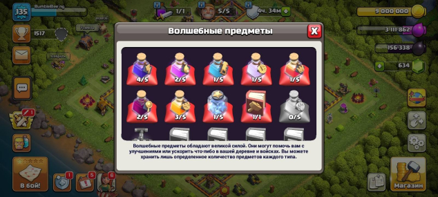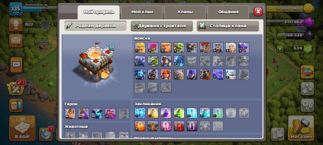 Уровень Ратуши: 11Краткое описание: 🍌🚀 [ 11 ТХ ] ⬛ 135 LVL ⬛ [ 48/53/30/22 ] ⬛ ЕСТЬ ВОЛШЕБНЫЕ ПРЕДМЕТЫ ⬛ 630+ КРИССТАЛОВ⬛ СМЕНА ПОЧТЫ🍌🚀
