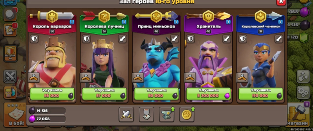 Уровень Ратуши: 17Краткое описание: Быстрая выдача [17TX] 💙 5 рабочих + 10000 гемов + Герои уровня 40-55 💜 6-7 епической экипировки