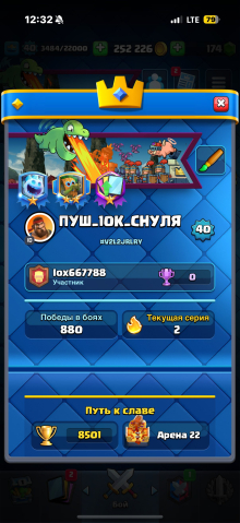 Краткое описание: 【🔐ГАРАНТИЯ🔐】【🏆8501🏆】【👑40 LVL👑】【🌠6 ЭВО🌠】【🃏118 КАРТ🃏 】【💬26 ЭМОДЗИ💬】【📨С ПОЧТОЙ📨】