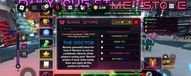 1 Геймпассы в ink game: Custom Player tag, Permanent Lighter, Private Server+, Glass Manufacturer Vision. И 2 мифика Time stop, THE DOCTOR и имеется 3 лимитированных эмоции