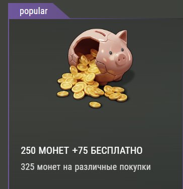 Тип предложения: ВалютаКраткое описание: 🪙💛250+75, 325 монет💛🪙IOS / ANDROID + БОНУС ЗА ОТЗЫВ🎁