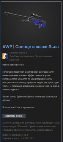 Краткое описание: ✅AWP | Солнце в знаке Льва✅ПОНОШЕННОЕ✅【ГАРАНТИЯ】🔥【БЫСТРО】🔥✅НИЖЕ АВТОПОКУПКИ✅