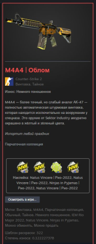 Краткое описание: ✅M4A4 | Облом✅НЕМНОГО ПОНОШЕННОЕ✅【ГАРАНТИЯ】🔥【БЫСТРО】🔥✅НИЖЕ АВТОПОКУПКИ✅ТОП НАКЛЕЙКИ✅