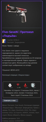 Краткое описание: ✅Five-SeveN | Протокол «Подъём»✅ПРЯМО С ЗАВОДА✅【ГАРАНТИЯ】🔥【БЫСТРО】🔥✅НИЖЕ АВТОПОКУПКИ✅ТОП НАКЛЕЙКИ✅