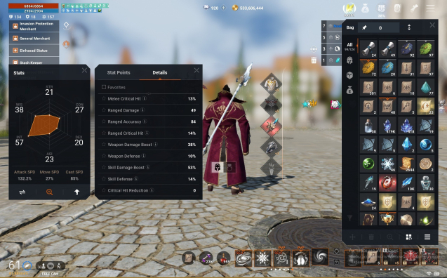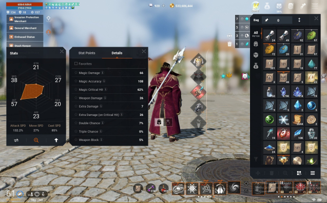 Шмот фулл синего волка, куча колец, много красных скиллов, 1 Фиолетовый скилл за золото. Красный посох Архангела +7.