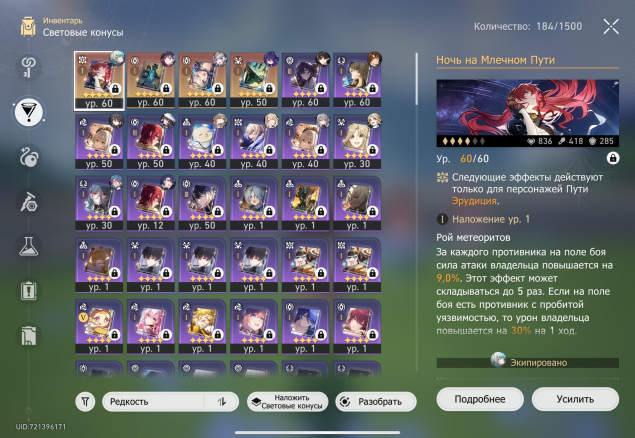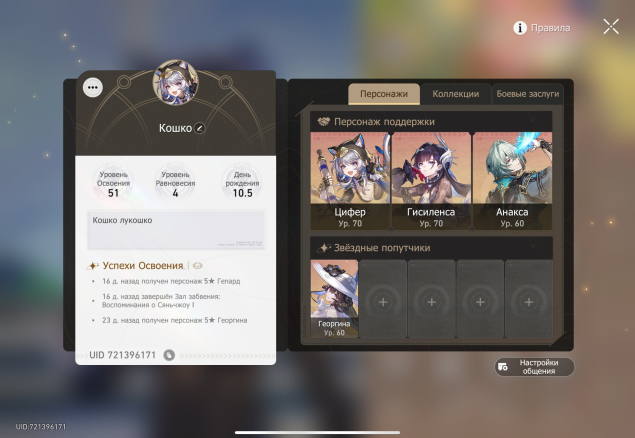 Подробное описание: 51 ранг, сервер Европа. Из легендарных персонажей: Цифер (и сигна), Анакса, Георгина, Гисиленса, Топаз и счетовод, Жуань Мэй, Зеле, Вельт, Гепард, Арчер, Броня, Янь цин, Дань Хэн дракон пустоши. Также 4 легендарных конуса, включая сигну Цифер, вы можете увидеть в скриншотах ниже. Утерь нет. Много контента. Если не получится привязать вашу почту ( бывает из-за ошибок сервера или плохого интернета: ошибка «слишком много попыток»), могу отдать свою почту на которую сейчас привязан аккаунт. Почта gmail. По всем вопросам пишите, с радостью отвечу. Доната не было