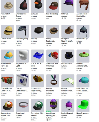 Подробное описание: Аккаунт ROBLOX конца 2008 года с большим количеством офсейлов (6 страниц), причем действительно хороших, с очень широким диапазоном лет (2008-2014) (Pinstripe Fedora, almost all R&R&R caps, Veteran Medal, ¬_¬ face, Ninja face, and :3 face).
