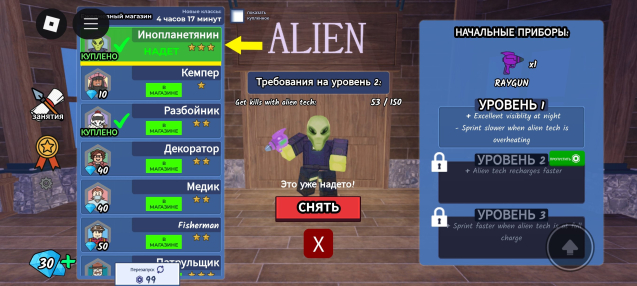 99 ночей — прожито 505 дней имеется класс инопланетянин