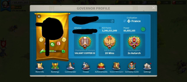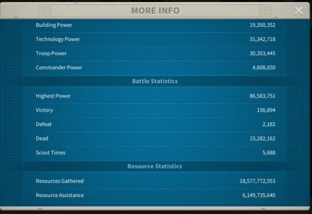Подробное описание: 86M Power | 3.3B Kill Points | 15M Deaths