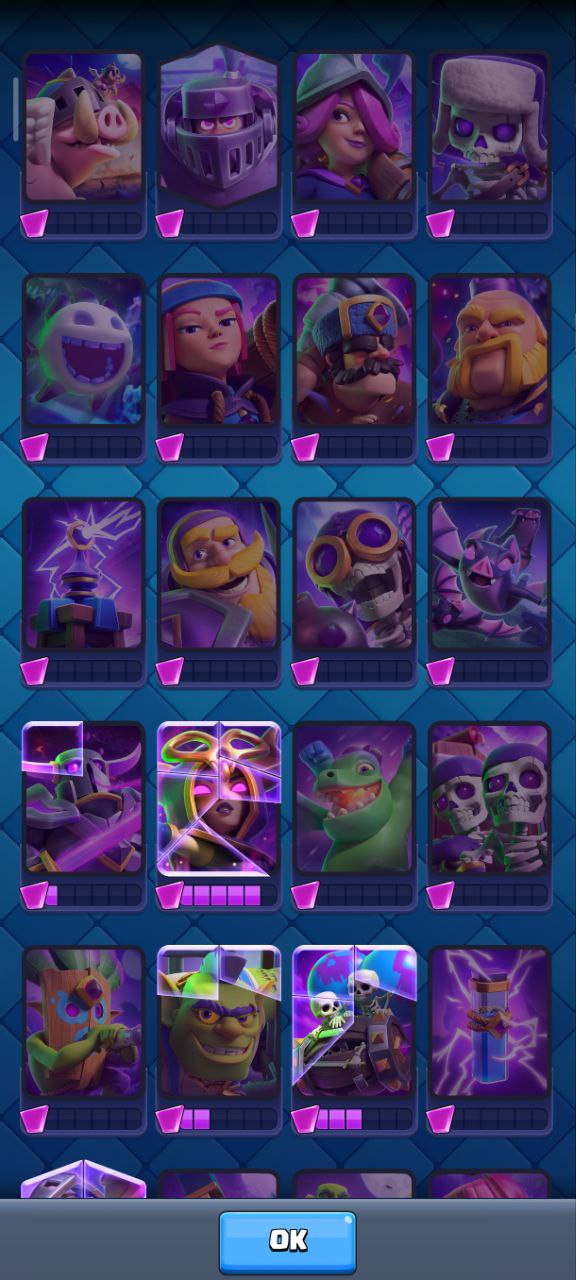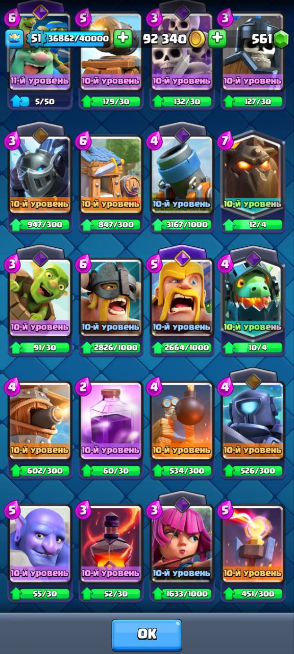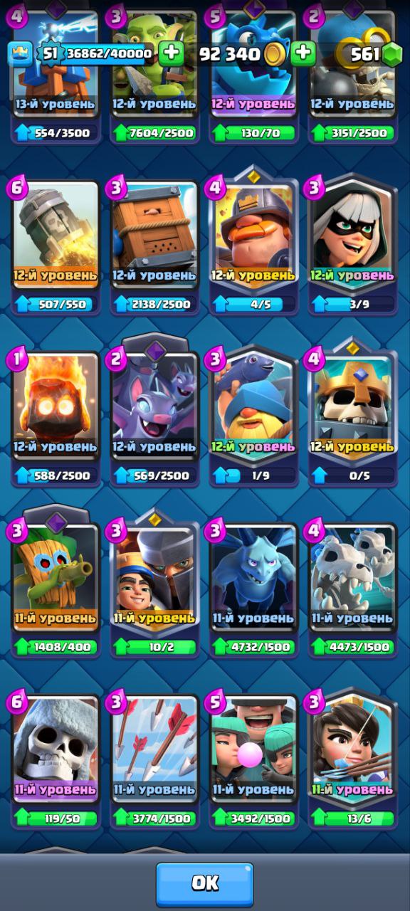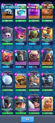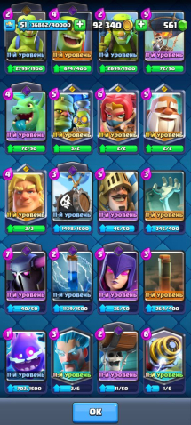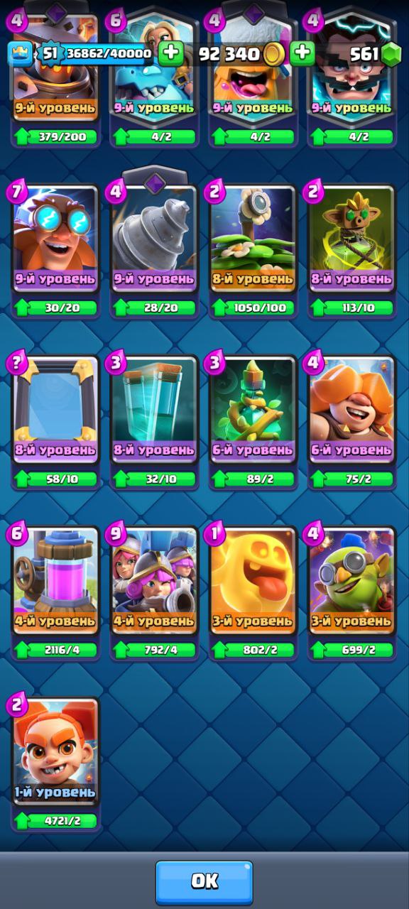 Главный мой аккаунт 10500кубков, все карты, есть все карты, есть эволюции на: пушка, валькирия, электродракон, варвары, гоблин-гигант, также много осколков на другие карты, есть смена ника+сюда привязан clash of clans 9 ратуша.Вся информация на скриншотах.Почта новая, заменена 2 мес назад.