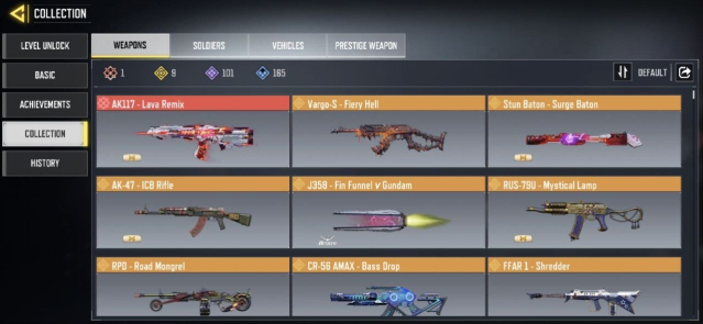 🔫 Скины оружия: 1 Мифический – 9 Легендарных – 101 Эпическая – 165 Редких 🔫