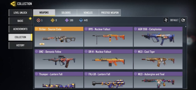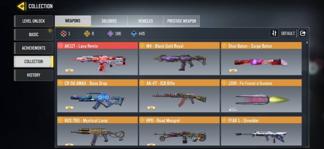 🔫 Skins Gun: 1 Mythic — 9 Legendary — 186 Epic — 445 Rare🔫