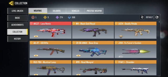🔫 Skins Gun: 1 Mythic — 9 Legendary — 274 Epic — 568 Rare🔫