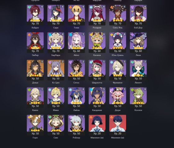 Есть все 4* персонажи, многие с6