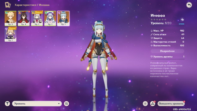 Подробное описание: 🔴Продам стартовый аккаунт лвл 5 с героем ИНЕФФА, МИДЗУКИ, Фишль Ноэль