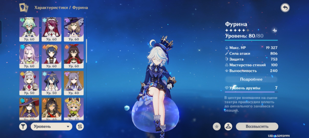 хорошие четырехзвездочные C6 персонажи. хорошо собраны, артефакты на аккаунте тоже имеются