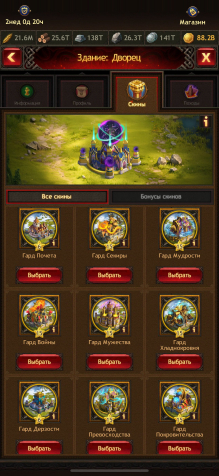 Подробное описание: Вещи правителя так и не собрал до конца, совсем не до игры. 87 гардов в наличии из которых 8 можно поднять (порядка 8-9 месяцев не играл). Камней асгарда 15.7к, рунических монет 100к, золота 88.2в, еды 0 ( в запасе 1.2вх250 000), дерева 25т (в запасе 2.6вх250 000), железа 138т (в запасе 8.8в), камня 26т (в запасе 2.4вх250 000), серебра 141т (запаса нет). Играл на убийцах, в валькирии убийцы, стрелки, кони и шпионы вплоть до 18 прокачены (дальше замок не позволяет). Руны на убийц и шпионов, руны вполне неплохие, как на убийц, так и на шпионов. В свете убийцы, стрелки и шпионы прокачены полностью. К сожалению только 10 фото разрешено загрузить, поэтому без части гардов.