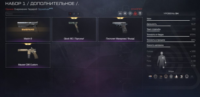 ✅ Пистолеты: Maxim 9 (9 модов) || Пистолет Макарова " Фьорд " (1 мод) || Mauser C96 Custom (2 мода) || Glock 18C «Гаргулия» (1 мод)
