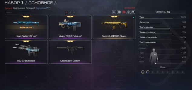 ✅ Инженер: Honey Badger " Стужа " (2 мода) || CSV-9 " Заморозка " (1 мод) || Magpul PDR-C " Молния " (1 мод) ||⭐Золотой ACR CQB Classic⭐