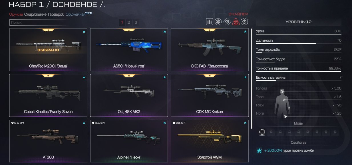 ✅ Снайпер: CheyTac M200 " Зима " (1 мод) || АS50 " Новый год " (1 мод) || CKC FAB " Заморозка " (1 мод) || Cobalt Kinetics Twenty-Seven (1 мод) || ОЦ-48К МК2 (1 мод)