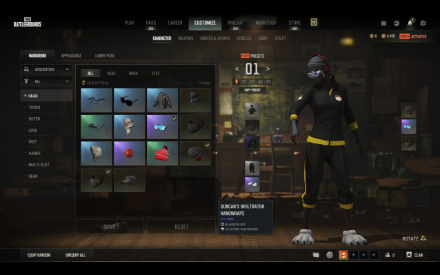 💎Duncan's Infiltrator Handwraps, Black Beanie and Headphones, Earloop Mask, Polar Bear Feet, Pochinki Ursus Sports Leggings, StreamerOne, Sanhok Survivor Tee, Jijing's Hoodie, Pigff's Tactical Striker Pants,