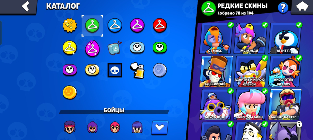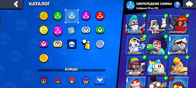 «Помянем»✨, «Красавчик»✨, «Птичка, птичка, птичка!»✨, «Порождение ночи»✨, «Крутышка»✨, «Президент Brawl Stars»✨, «Мастер пинка»✨,