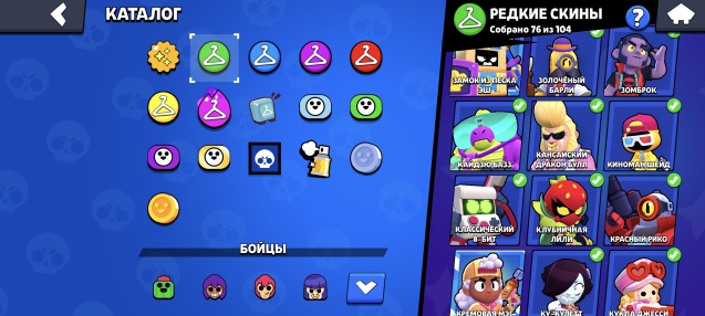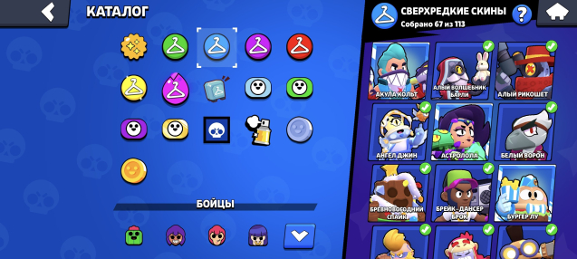 Очень много скинов ( на скринах видно количество каждой рекдости )