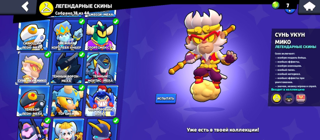 🟡18 легендарных скинов: вольт лайтер, антивирус 8-бит, безликий кэндзи, злая королева пэм, ворон-феникс, кольт-меха, леон-меха, мультяшка спайк, нита с бивнями, они кэндзи, робомайк, снежная королева амбер, спортсмен сту, сунь укун мико, темный ворон-меха, тор биби, финкс-меха, эдгар-меха
