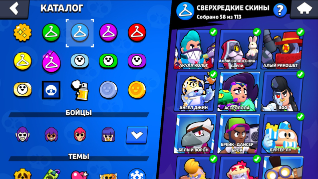 Краткое описание: 192 СКИНА🌸94 БРАВЛЕРА👾44447 КУБКОВ🏆20 ГИПЕРЗАРЯДОВ💜23 МАКС СИЛЫ🎯АКУЛА КОЛЬТ❤️БУНТАРКА ЛОЛА❤️