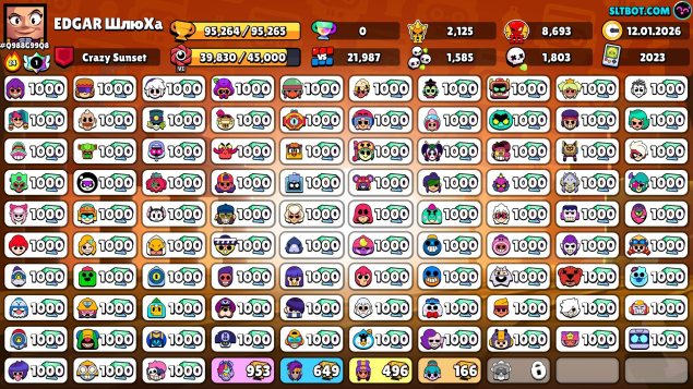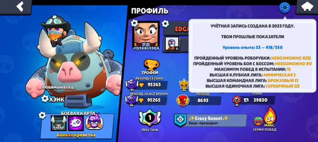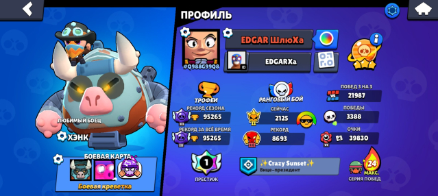 Краткое описание: Акк в бс, 95к, 30к блингов, пин за 30 ранг, престиж, 300+ гемов на акке.