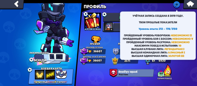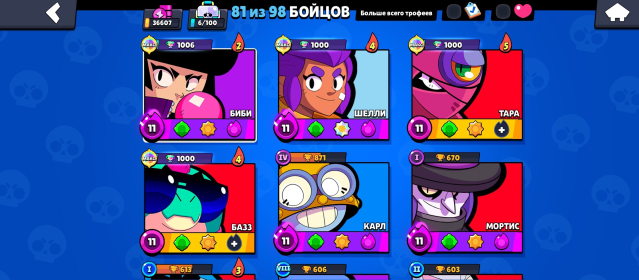 📅 Создан в 2019 | 🔥 96 скинов | 💪 81/98 бравлеров (15 на 11-й силе)